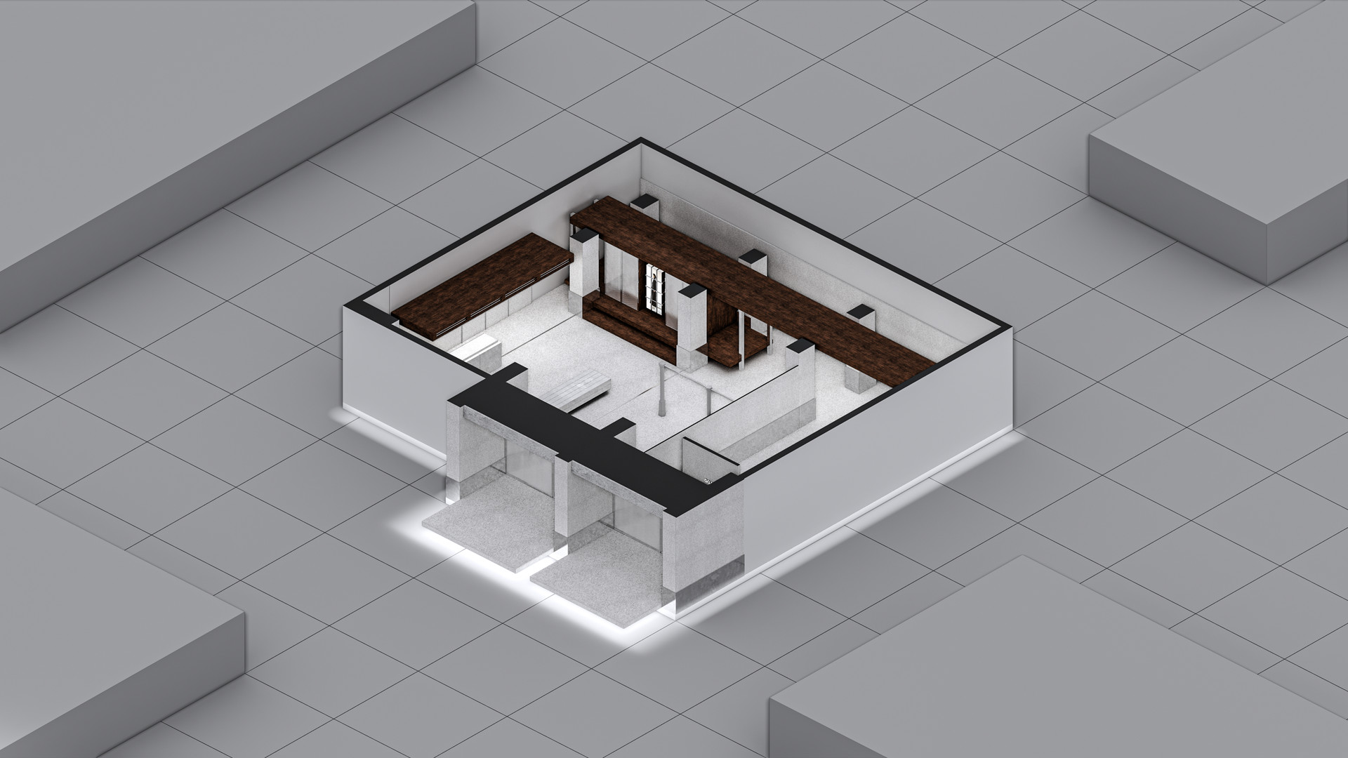 메인 공간의 연결되는 구조의 선형적 흐름은 사용자의 움직임에 따라 연속적인 시퀀스로 경험되는 플랫폼을 형성합니다.프로그램 간의 가시적·비가시적 경계는 공간 사용 방식에 따라 유연하게 변화하며, 전시와 소비, 머무름과 이동이 교차하는 장면을 만들어 냅니다.