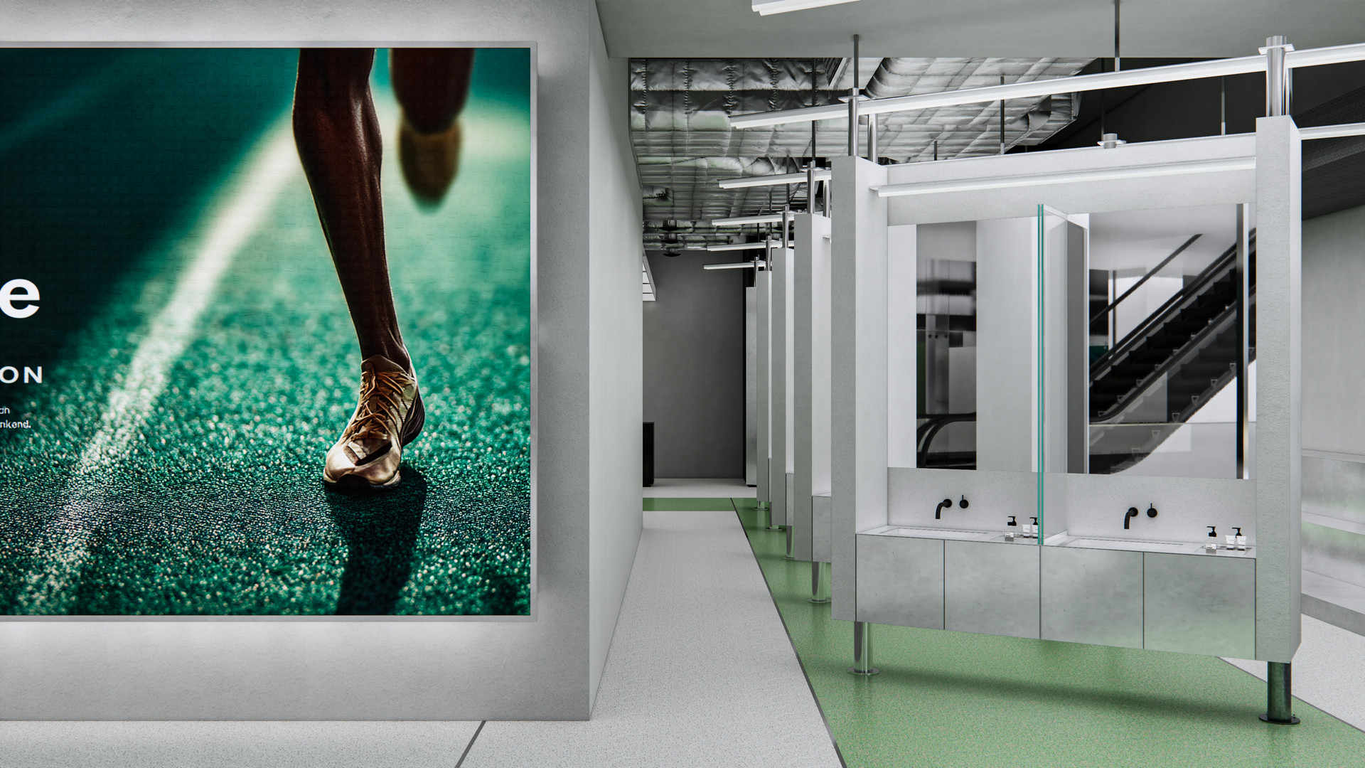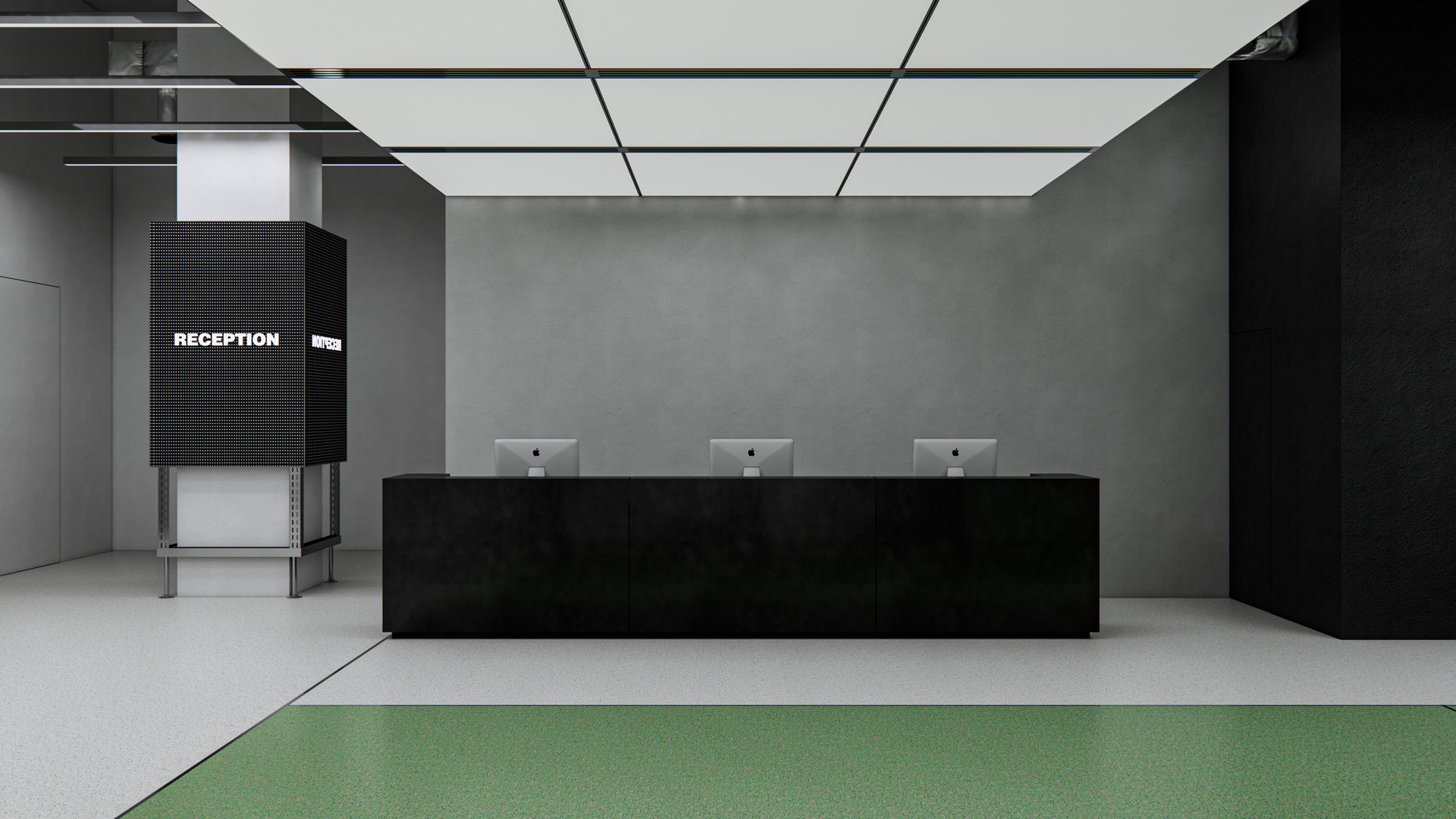 특히 다이어트센터와 내과 앞에는 정비소의 시각적 요소를 차용한 LED 패널이 설치되어 있습니다. 이는 단순한 장식이 아니라, 고객이 공용부의 대기공간에서 자연스럽게 동선을 파악하고 목적지로 이어질 수 있도록 돕는 안내 장치입니다.